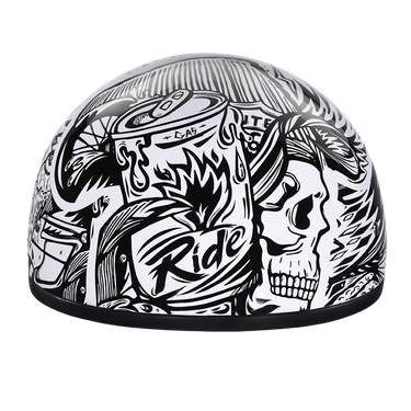 DOT Approved Daytona Motorcycle Half Face Helmet - Skull Cap Graphics for Men & Women, Scooters, ATVs, UTVs & Choppers - W/ Live Fast