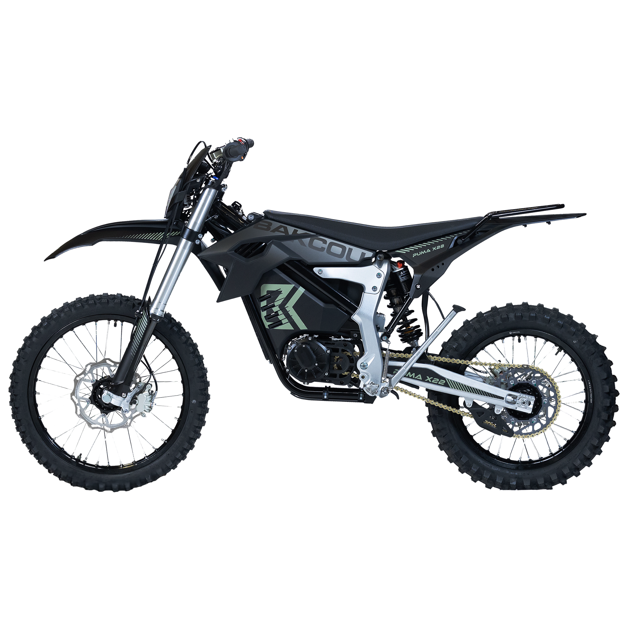 Designed to excel in the most demanding off-road conditions, the Bakcou Moto Puma X22 features rugged construction and premium components throughout. From its durable frame and suspension system to its high-traction tires and responsive brakes, every aspect of the Puma is engineered for maximum durability and performance. Plus, with its sleek and aggressive styling, the Puma commands attention wherever it goes, making a bold statement on and off the trails.