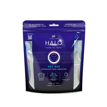 HALO Wax chain lubricant is engineered to dramatically improve drivetrain performance by reducing friction and wear caused by abrasive contaminants. Three elite grade ingredients deliver superior results:
