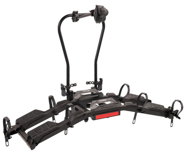 The Destination E for Electric Bikes is our new hitch bike rack designed specifically to carry electric bikes with any sized tire up to 4.5" wide. This new bike rack has a sleek and modern design and can carry up to two 70 lb. electric bikes or standard bikes. It includes an expandable, wide aluminum ramp so you can load and unload your bikes easily. The Destination E hitch-mounted bike rack can fold flat against the car when not in use and features "balanced tilting" where the pivot point is between the bikes for easy trunk access when the bikes are loaded.