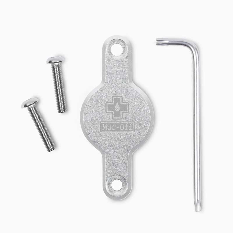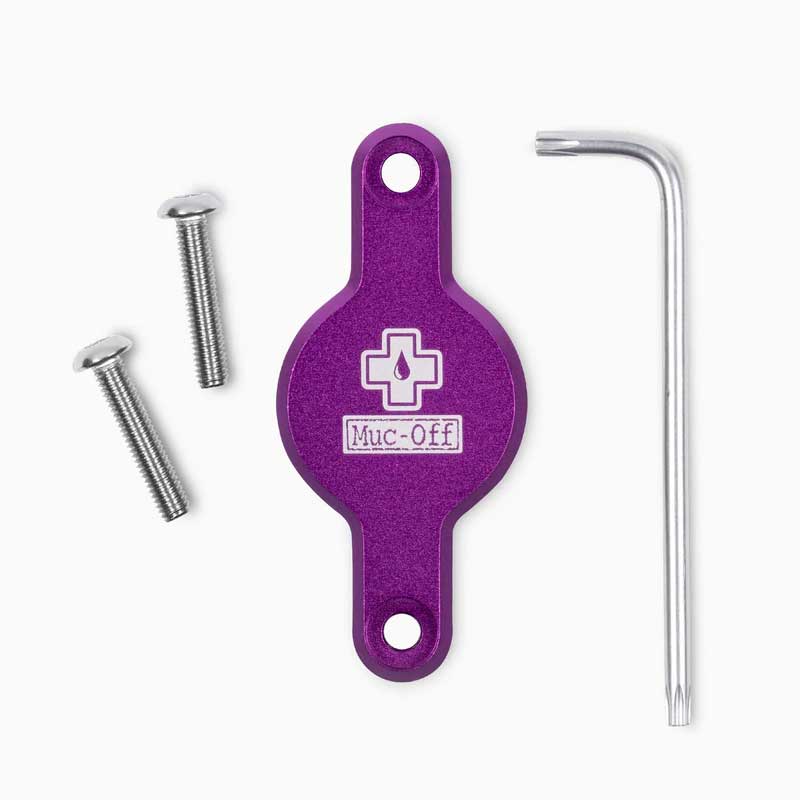 The Muc-Off Secure Tag Holder offers a secure way to install a tracker to your bicycle frame using the bottle cage mounting holes, so you can track down your bike down in the event of theft and can locate it. Made from machined aircraft grade 6061 aluminum body, with T25 security bolts and a security key for an extra level of protection against theft.